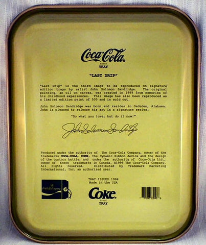 Coke Metal Tray: 1996 "Last Drip" Coca-Cola Tray John Solomon Sandridge Artist Metal Tray